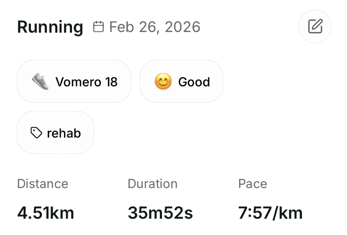 Syncs with Apple Health. Every run updates the mileage of the shoes you wore