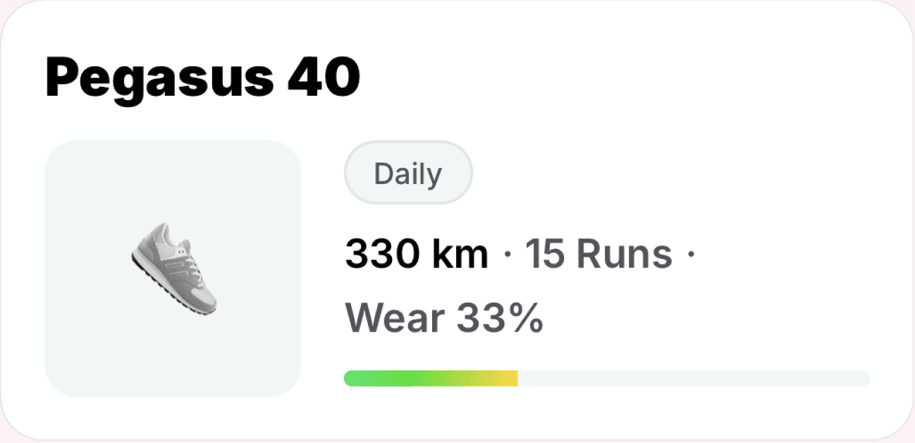 From daily training to race efforts, track how every run impacts your shoes and manage your rotation with precision.